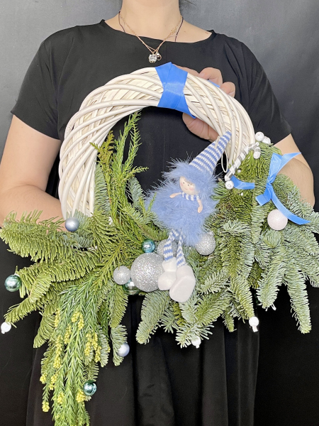 Новогодний венок 55 см из живых веток пихты НобилисУвеличить